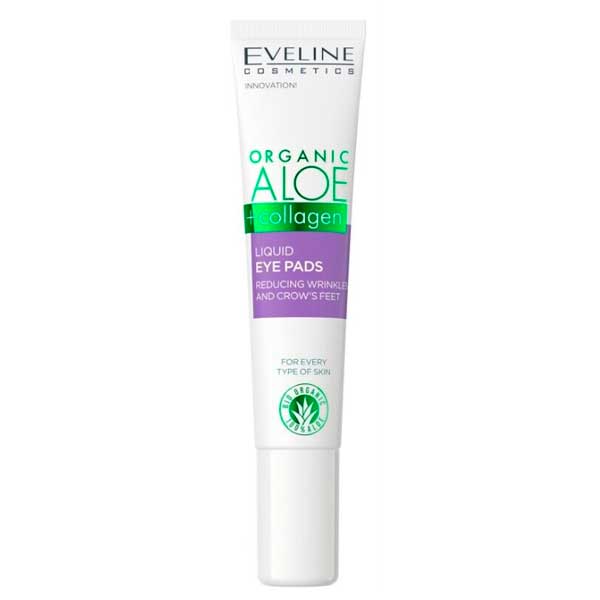 Eveline Organic Aloe + Collagen Liquid Eye Pads es un sérum específicamente diseñado para hidratar, rellenar y alisar las arrugas e imperfecciones sobre el área del contorno de ojos gracias a su fórmula rica en Aloe Vera y Colágeno. Recomendamos aplicar mañana y/o noche de 2 a 3 gotas masajeando sobre la zona del contorno de ojos.
